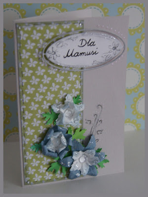 Ledwo się teraz z łóżka zwlokłam... Podobno panuje jakiś wirus, i nie tylko ja jestem jego ofiarą, co chwilę słyszę że kogoś rozłożyło... Między innymi dlatego dopiero teraz publikuję kartki wykonane na Dzień Matki...